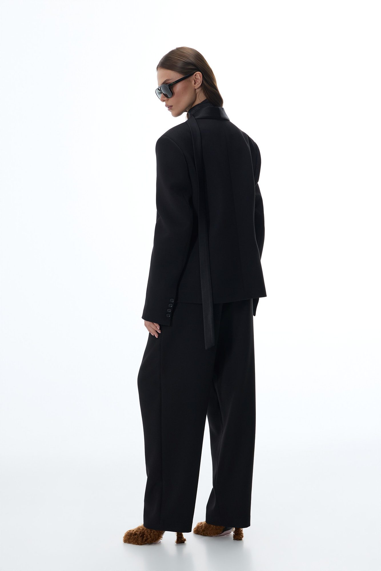 Stylowe spodnie z wysokim stanem i luźniejszą nogawką, które pięknie podkreślają sylwetkę i zapewniają wygodę noszenia. Klasyczny krój sprawia, że świetnie sprawdzą się zarówno w eleganckich, jak i codziennych stylizacjach. Idealne do koszuli, topu lub marynarki.