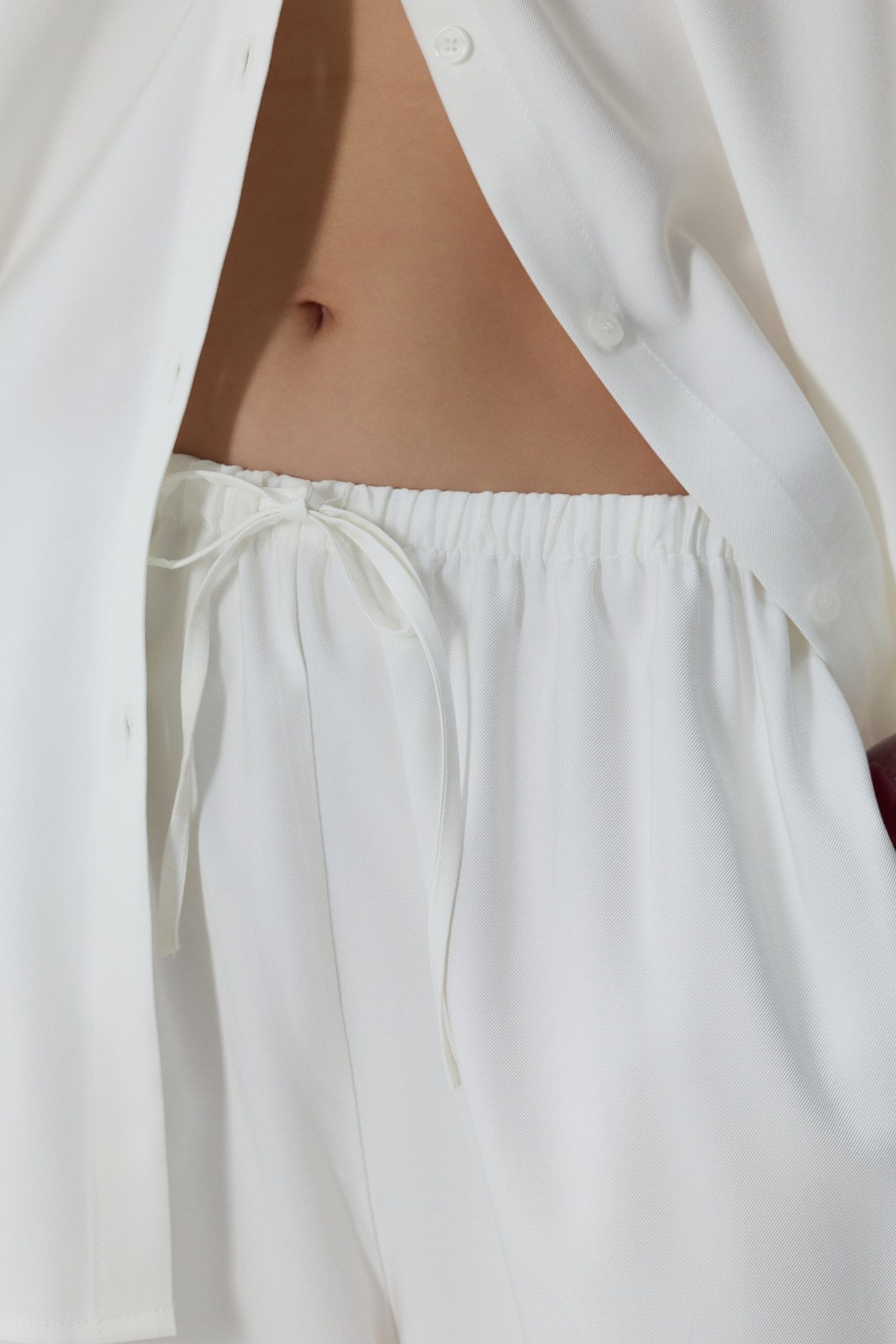 Off-white spodnie ESTELLA to połączenie wygody i ponadczasowego stylu. Wyposażone w praktyczne kieszenie oraz elastyczną gumkę w pasie ze sznurkiem, zapewniają idealne dopasowanie i komfort noszenia przez cały dzień. Świetnie układają się na sylwetce i doskonale pasują zarówno do casualowych, jak i bardziej eleganckich stylizacji – szczególnie w zestawie z koszulą ESTELLA.