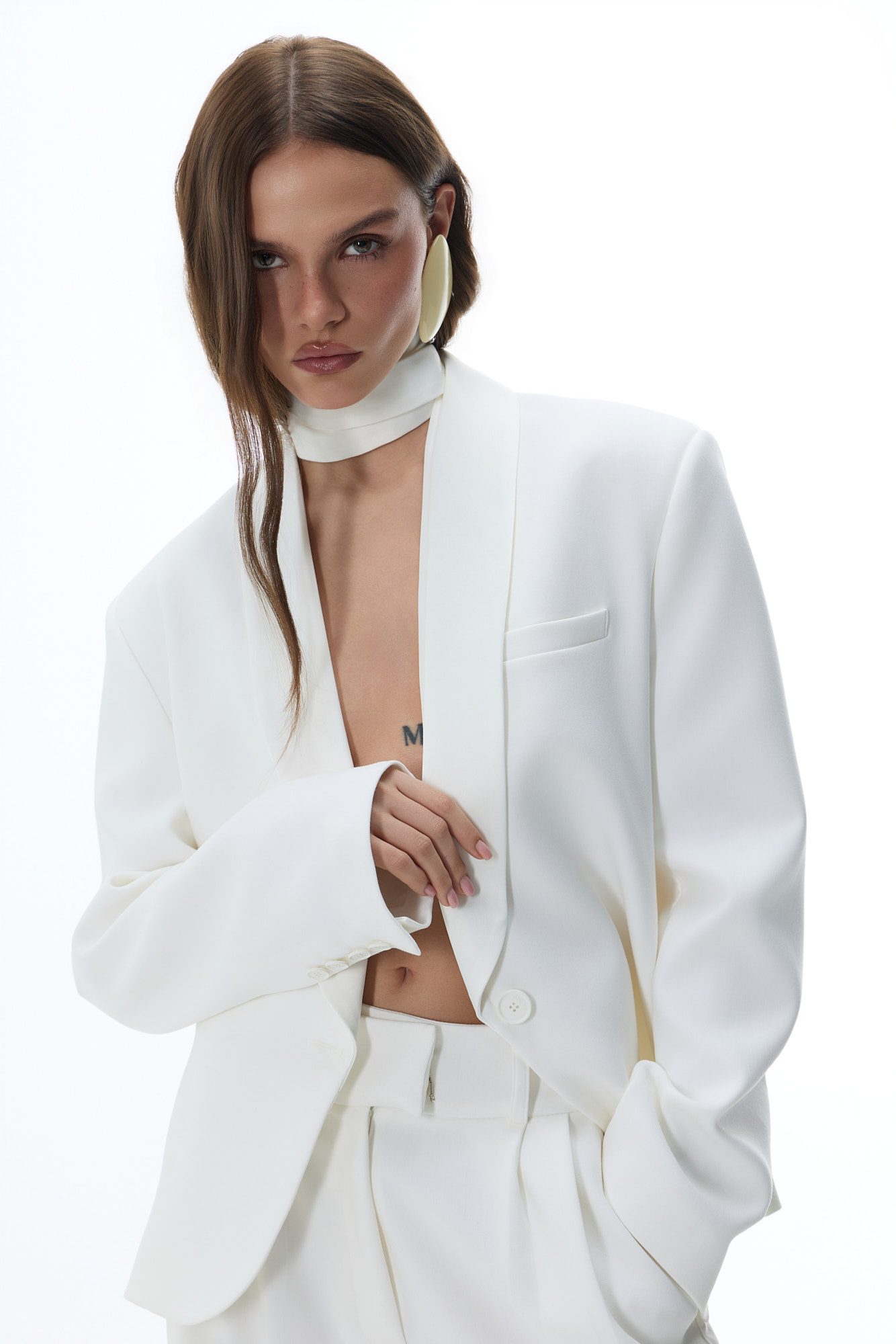 Minimalistyczny szal na szyję to ponadczasowy akcent, który nadaje stylizacji nowoczesnej elegancji. Idealnie komponuje się zarówno z klasyczną koszulą, jak i strukturalną marynarką, tworząc efekt effortless chic.